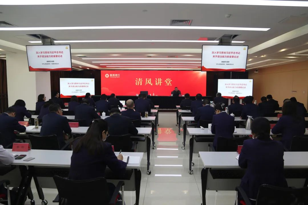 讲座用通俗易懂的语言、生动形象的实例,对政治能力进行了系统阐述和深入解读,为参训党员干部上了一堂深刻的政治能力必修课。参训党员干部表示,要在思想上重视、理论上学习、实践中磨炼“政治三力”,不断提高履职尽责的能力和水平,为推动晋商银行高质量发展提供坚强政治保证。